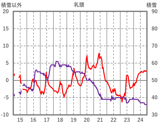 | 日 | 時 | 気温 | 降水 | 風向/風速 | 日照 | 積雪 | 降雪 |
