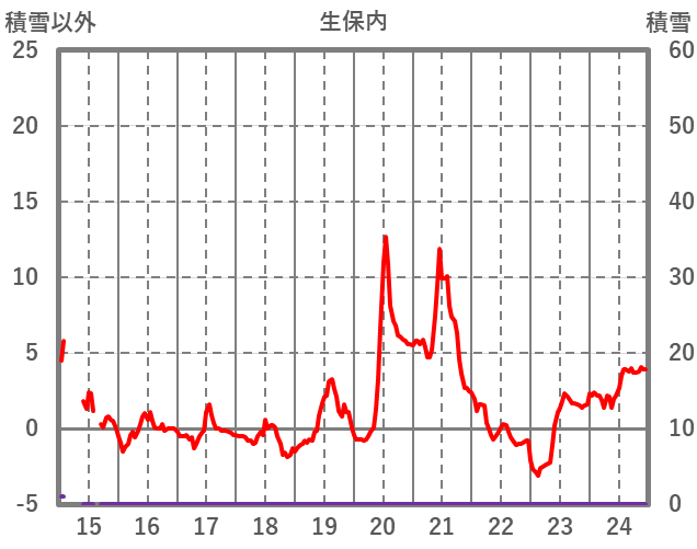 | 日 | 時 | 気温 | 降水 | 風向/風速 | 日照 | 積雪 | 降雪 |