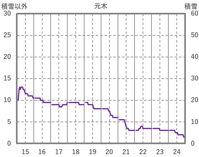 | 日 | 時 | 気温 | 降水 | 風向/風速 | 日照 | 積雪 | 降雪 |