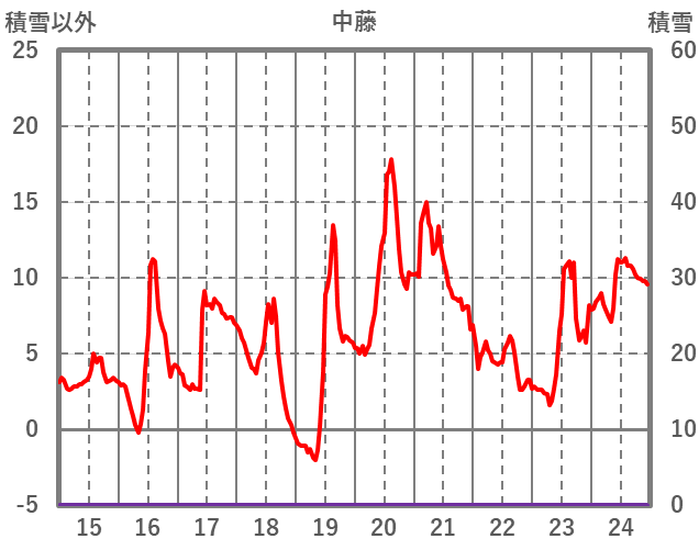 | 日 | 時 | 気温 | 降水 | 風向/風速 | 日照 | 積雪 | 降雪 |