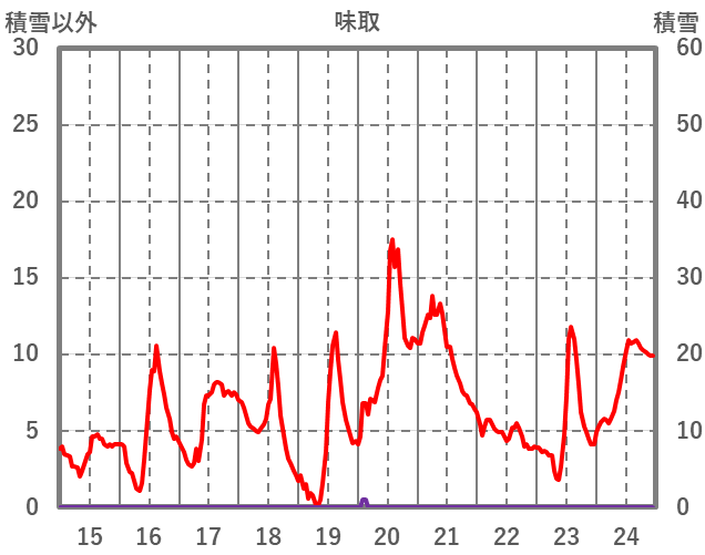 | 日 | 時 | 気温 | 降水 | 風向/風速 | 日照 | 積雪 | 降雪 |