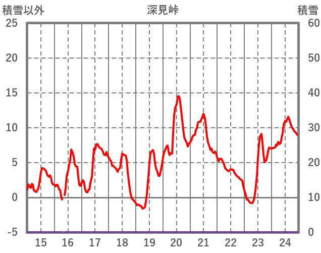 | 日 | 時 | 気温 | 降水 | 風向/風速 | 日照 | 積雪 | 降雪 |