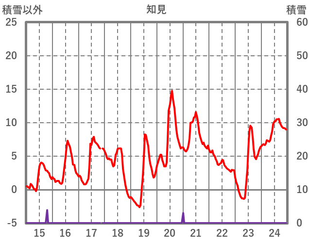 | 日 | 時 | 気温 | 降水 | 風向/風速 | 日照 | 積雪 | 降雪 |