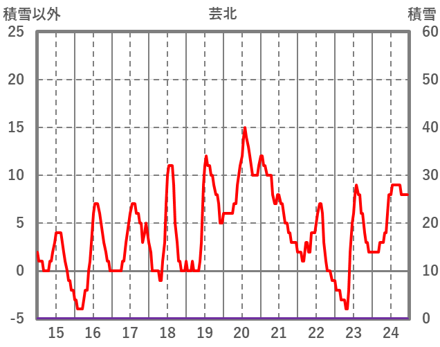 | 日 | 時 | 気温 | 降水 | 風向/風速 | 日照 | 積雪 | 降雪 |