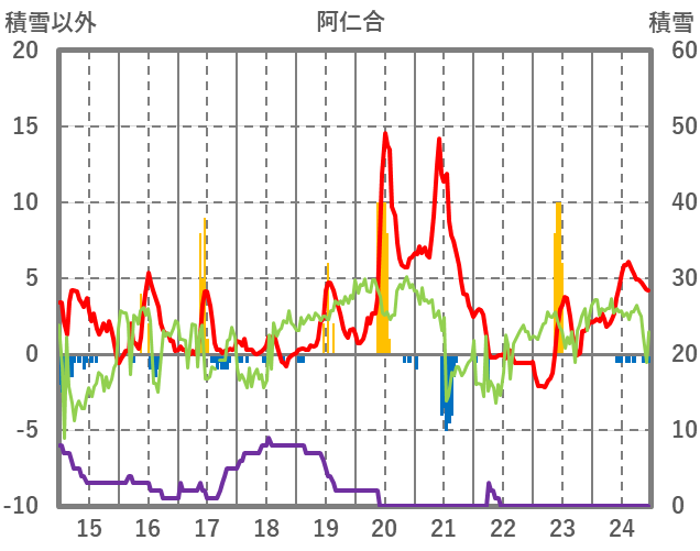| 日 | 時 | 気温 | 降水 | 風向/風速 | 日照 | 積雪 | 降雪 |