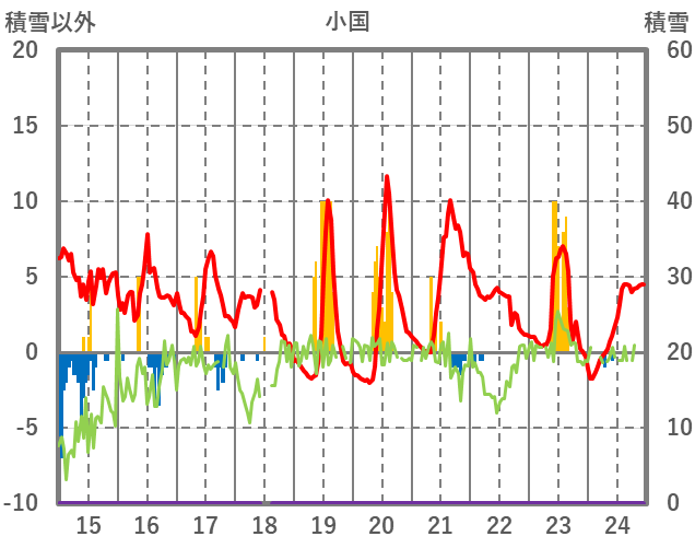 | 日 | 時 | 気温 | 降水 | 風向/風速 | 日照 | 積雪 | 降雪 |
