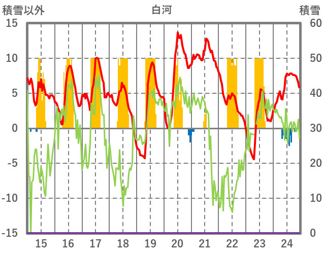 | 日 | 時 | 気温 | 降水 | 風向/風速 | 日照 | 積雪 | 降雪 |