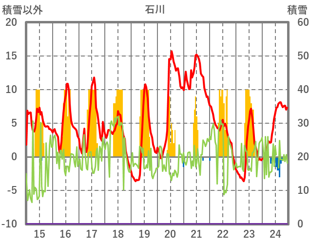 | 日 | 時 | 気温 | 降水 | 風向/風速 | 日照 | 積雪 | 降雪 |