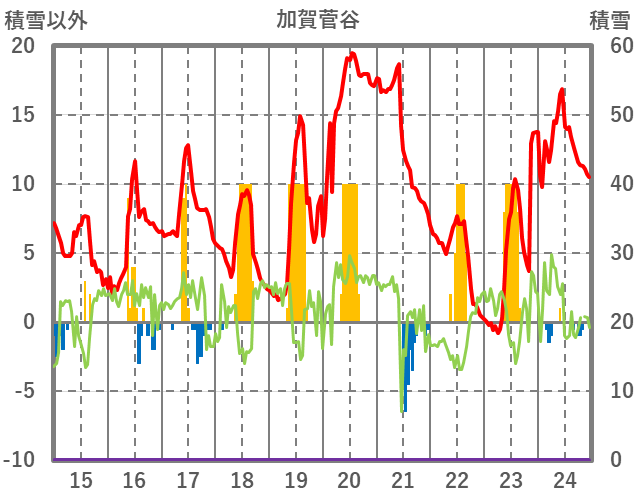 | 日 | 時 | 気温 | 降水 | 風向/風速 | 日照 | 積雪 | 降雪 |