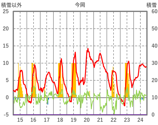 | 日 | 時 | 気温 | 降水 | 風向/風速 | 日照 | 積雪 | 降雪 |