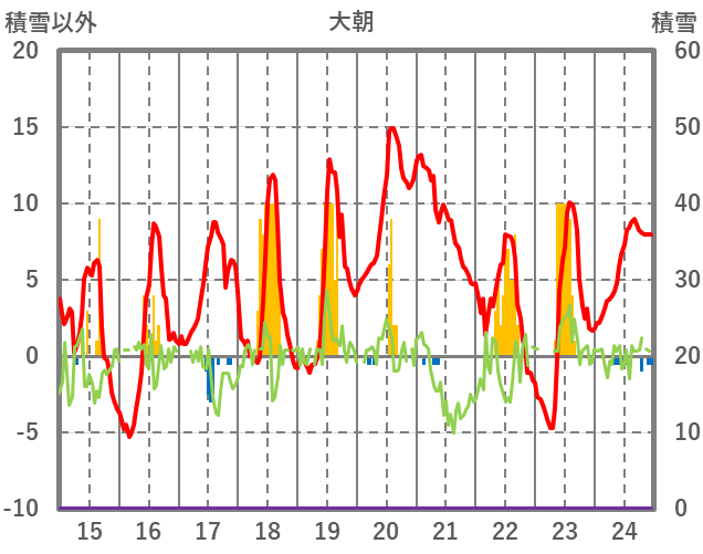 | 日 | 時 | 気温 | 降水 | 風向/風速 | 日照 | 積雪 | 降雪 |