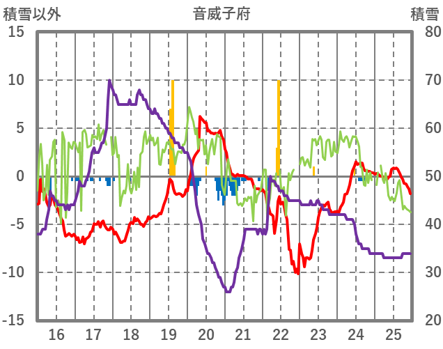 | 日 | 時 | 気温 | 降水 | 風向/風速 | 日照 | 積雪 | 降雪 |