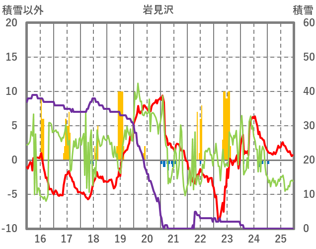 | 日 | 時 | 気温 | 降水 | 風向/風速 | 日照 | 積雪 | 降雪 |