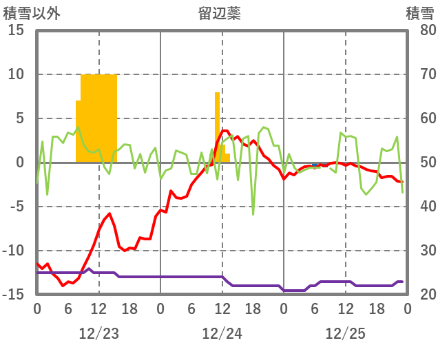 | 日 | 時 | 気温 | 降水 | 風向/風速 | 日照 | 積雪 | 降雪 |