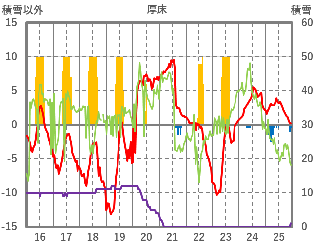 | 日 | 時 | 気温 | 降水 | 風向/風速 | 日照 | 積雪 | 降雪 |