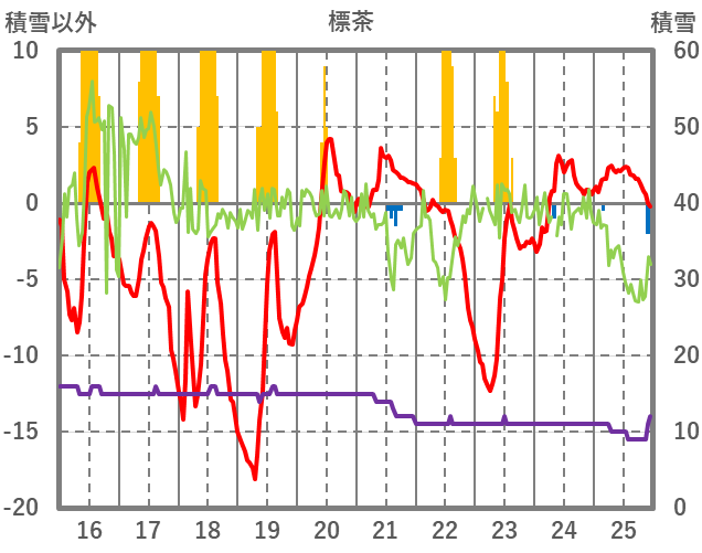 | 日 | 時 | 気温 | 降水 | 風向/風速 | 日照 | 積雪 | 降雪 |