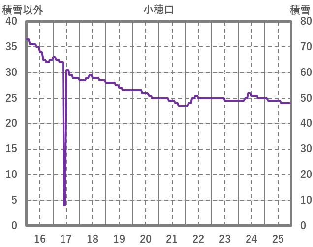 | 日 | 時 | 気温 | 降水 | 風向/風速 | 日照 | 積雪 | 降雪 |