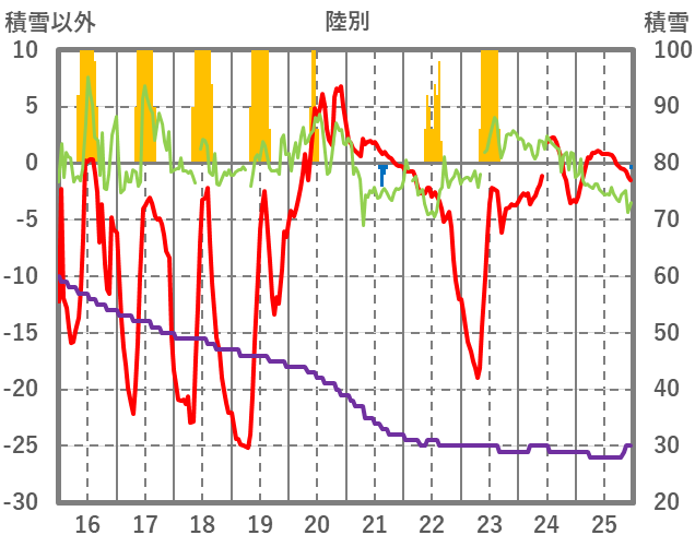 | 日 | 時 | 気温 | 降水 | 風向/風速 | 日照 | 積雪 | 降雪 |