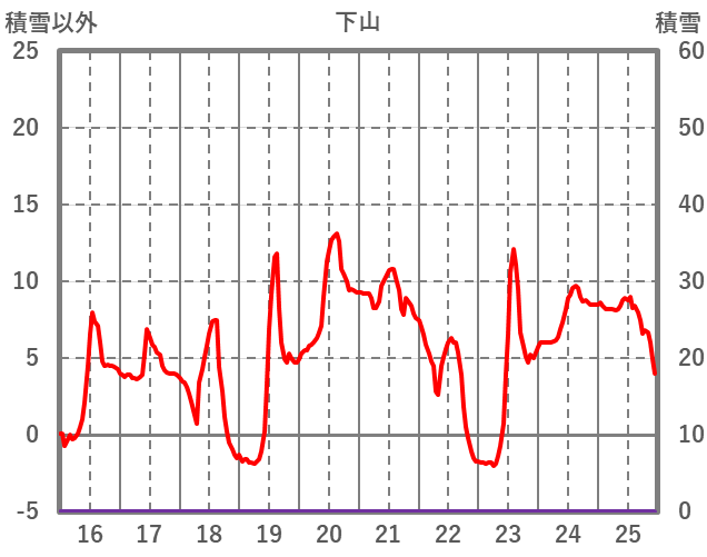 | 日 | 時 | 気温 | 降水 | 風向/風速 | 日照 | 積雪 | 降雪 |