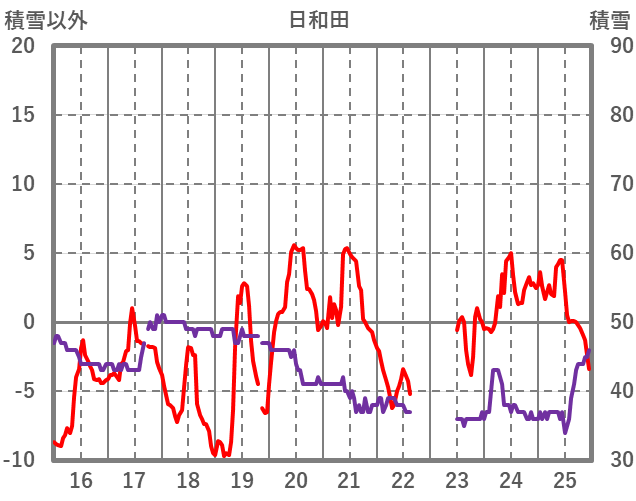 | 日 | 時 | 気温 | 降水 | 風向/風速 | 日照 | 積雪 | 降雪 |