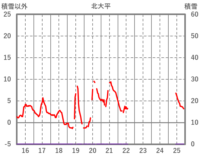 | 日 | 時 | 気温 | 降水 | 風向/風速 | 日照 | 積雪 | 降雪 |