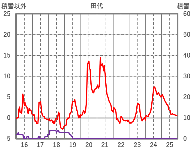 | 日 | 時 | 気温 | 降水 | 風向/風速 | 日照 | 積雪 | 降雪 |