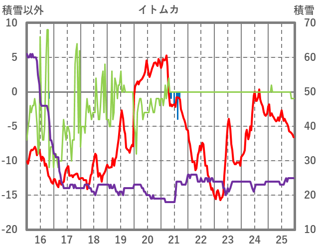 | 日 | 時 | 気温 | 降水 | 風向/風速 | 日照 | 積雪 | 降雪 |