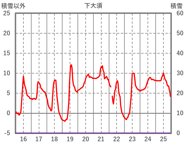 | 日 | 時 | 気温 | 降水 | 風向/風速 | 日照 | 積雪 | 降雪 |