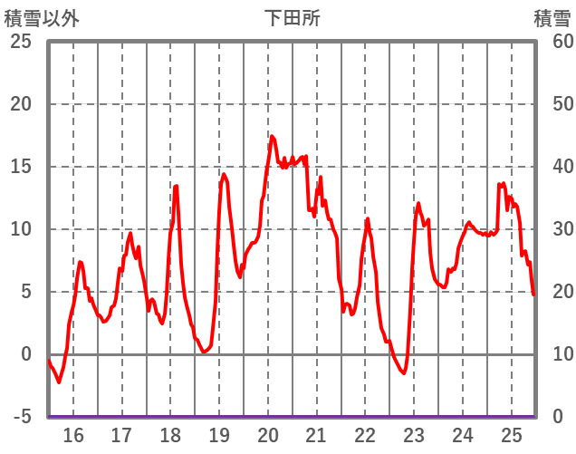 | 日 | 時 | 気温 | 降水 | 風向/風速 | 日照 | 積雪 | 降雪 |