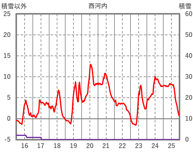 | 日 | 時 | 気温 | 降水 | 風向/風速 | 日照 | 積雪 | 降雪 |