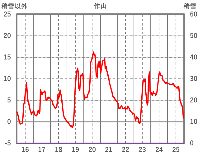 | 日 | 時 | 気温 | 降水 | 風向/風速 | 日照 | 積雪 | 降雪 |