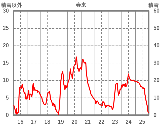 | 日 | 時 | 気温 | 降水 | 風向/風速 | 日照 | 積雪 | 降雪 |