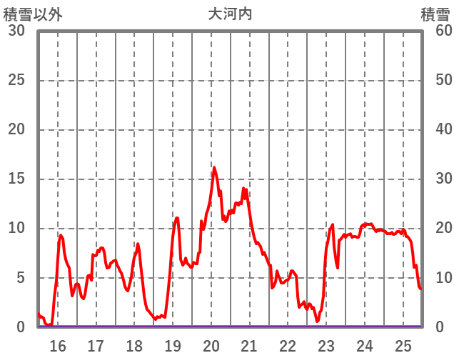 | 日 | 時 | 気温 | 降水 | 風向/風速 | 日照 | 積雪 | 降雪 |