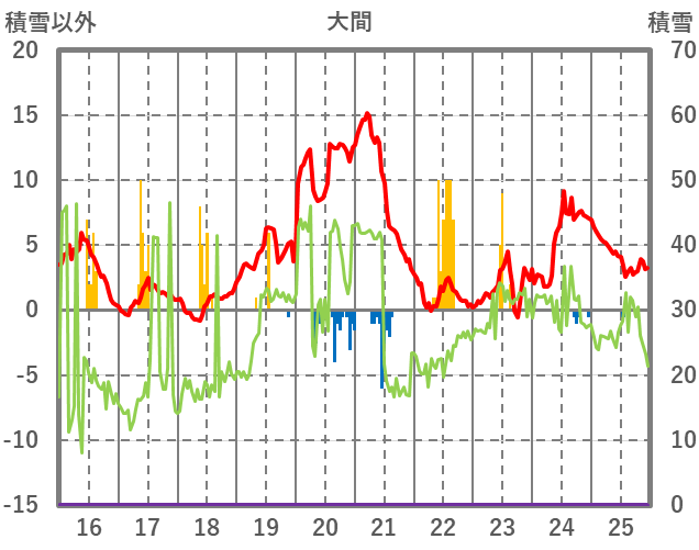 | 日 | 時 | 気温 | 降水 | 風向/風速 | 日照 | 積雪 | 降雪 |