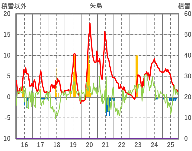 | 日 | 時 | 気温 | 降水 | 風向/風速 | 日照 | 積雪 | 降雪 |