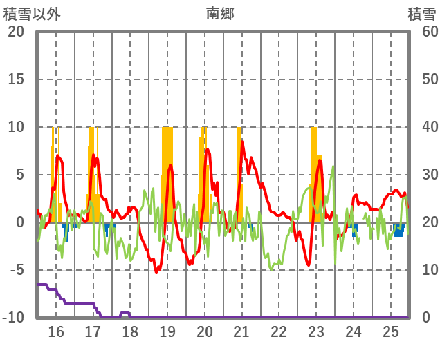 | 日 | 時 | 気温 | 降水 | 風向/風速 | 日照 | 積雪 | 降雪 |