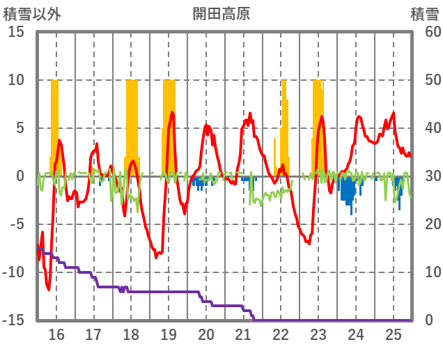 | 日 | 時 | 気温 | 降水 | 風向/風速 | 日照 | 積雪 | 降雪 |