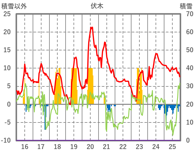 | 日 | 時 | 気温 | 降水 | 風向/風速 | 日照 | 積雪 | 降雪 |