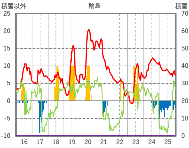 | 日 | 時 | 気温 | 降水 | 風向/風速 | 日照 | 積雪 | 降雪 |