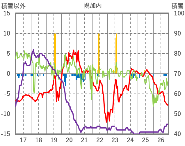 | 日 | 時 | 気温 | 降水 | 風向/風速 | 日照 | 積雪 | 降雪 |