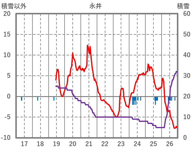 | 日 | 時 | 気温 | 降水 | 風向/風速 | 日照 | 積雪 | 降雪 |