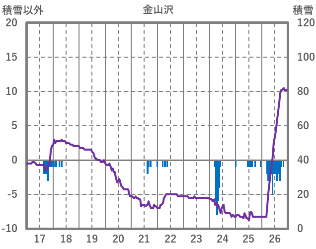 | 日 | 時 | 気温 | 降水 | 風向/風速 | 日照 | 積雪 | 降雪 |