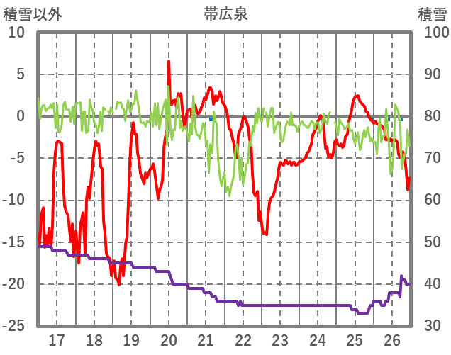 | 日 | 時 | 気温 | 降水 | 風向/風速 | 日照 | 積雪 | 降雪 |