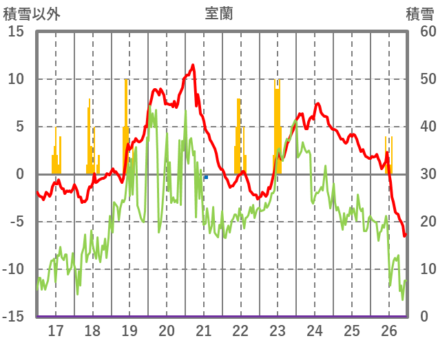 | 日 | 時 | 気温 | 降水 | 風向/風速 | 日照 | 積雪 | 降雪 |