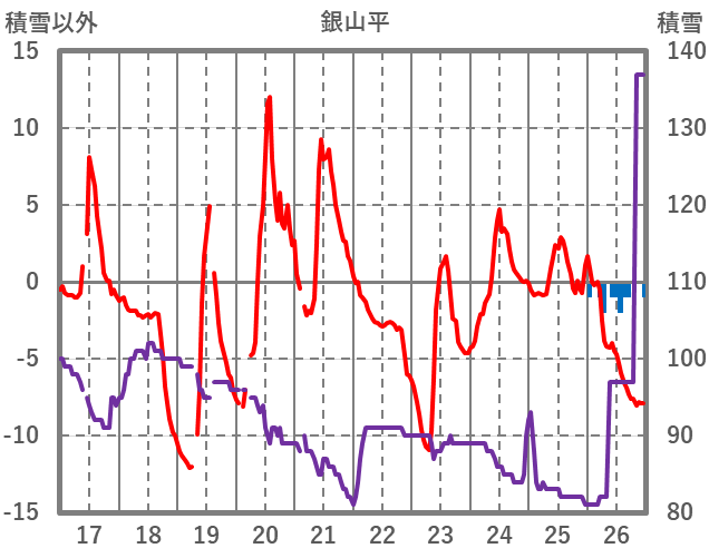 | 日 | 時 | 気温 | 降水 | 風向/風速 | 日照 | 積雪 | 降雪 |