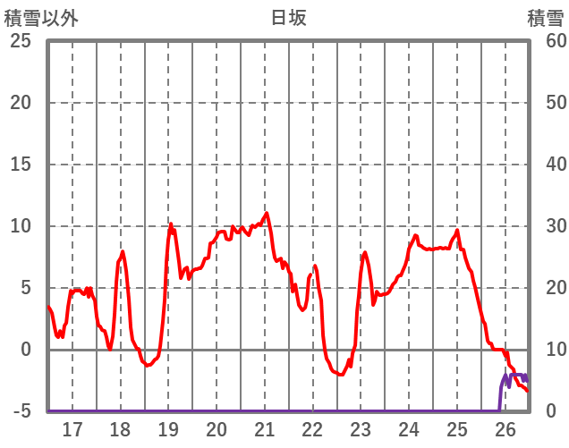 | 日 | 時 | 気温 | 降水 | 風向/風速 | 日照 | 積雪 | 降雪 |