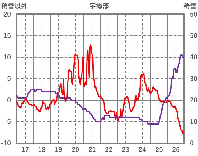 | 日 | 時 | 気温 | 降水 | 風向/風速 | 日照 | 積雪 | 降雪 |