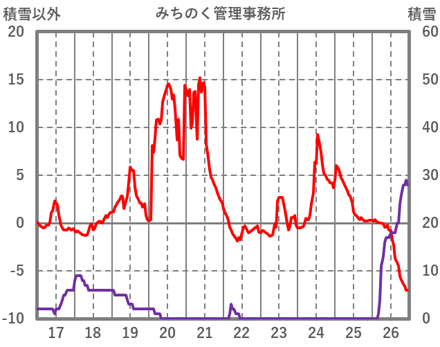 | 日 | 時 | 気温 | 降水 | 風向/風速 | 日照 | 積雪 | 降雪 |
