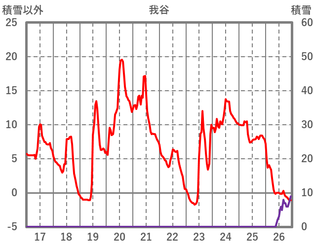 | 日 | 時 | 気温 | 降水 | 風向/風速 | 日照 | 積雪 | 降雪 |