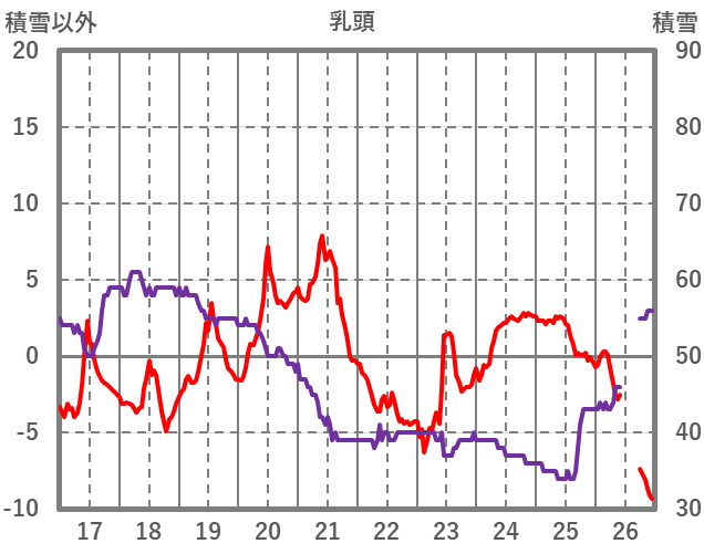 | 日 | 時 | 気温 | 降水 | 風向/風速 | 日照 | 積雪 | 降雪 |